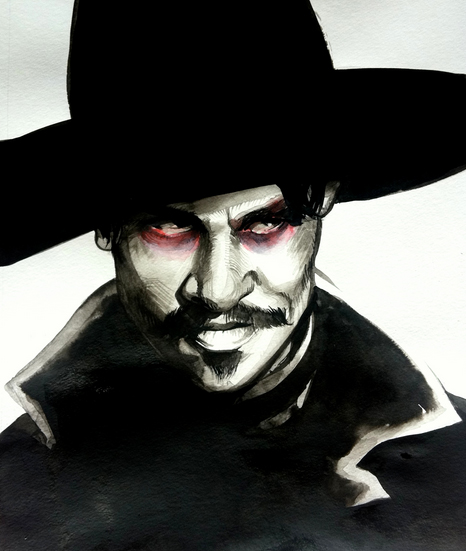 Pintura de Doc Holliday com o tinhoso no corpo (cruz credão).